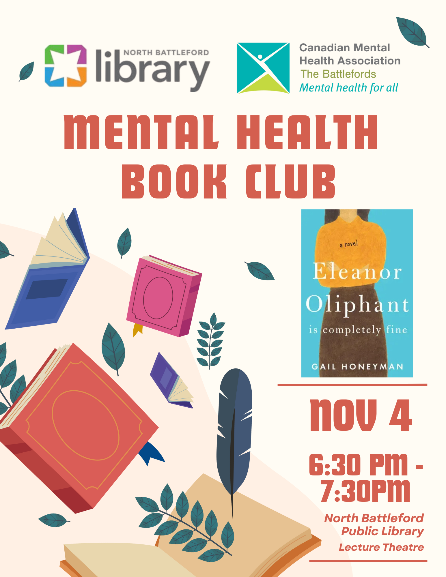 Join us for a welcoming and judgment-free space to explore mental health through the power of books.