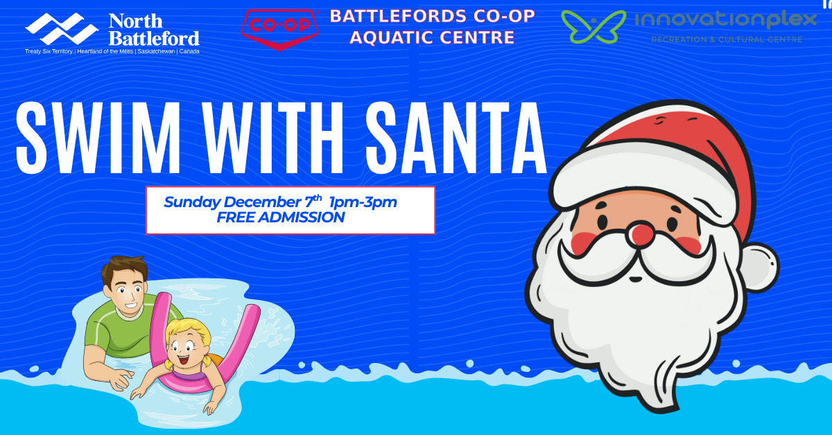 Join Mr. and Mrs. Claus in the pool for a photo op. The "Swim with Santa" event at the Battlefords CO-OP Aquatic Centre is a festive and community-oriented event that provides a unique opportunity for families and individuals to...